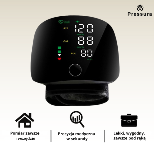 Zanim kupiłam ciśnieniomierz nadgarstkowy Pressura, musiałam co tydzień chodzić do przychodni, żeby kontrolować ciśnienie. Dojazdy i czekanie zajmowały mi pół dnia. Teraz sprawdzam ciśnienie codziennie rano przy stole w kuchni. Pomiar jest szybki i dokładny, a wyniki zapisuję i pokazuję lekarzowi podczas wizyt. To oszczędza mi godziny każdego miesiąca i daje większą kontrolę nad zdrowiem.