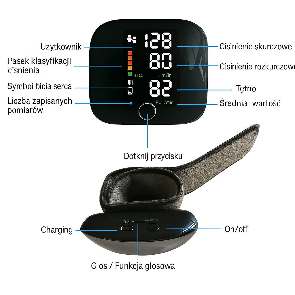 Tak — wystarczy założyć je na nadgarstek, nacisnąć jeden przycisk i zrelaksować się przez około 60 sekund. Wynik pojawi się wyraźnie na ekranie. Konfiguracja aplikacji zajmuje mniej niż 2 minuty i prowadzi krok po kroku.
